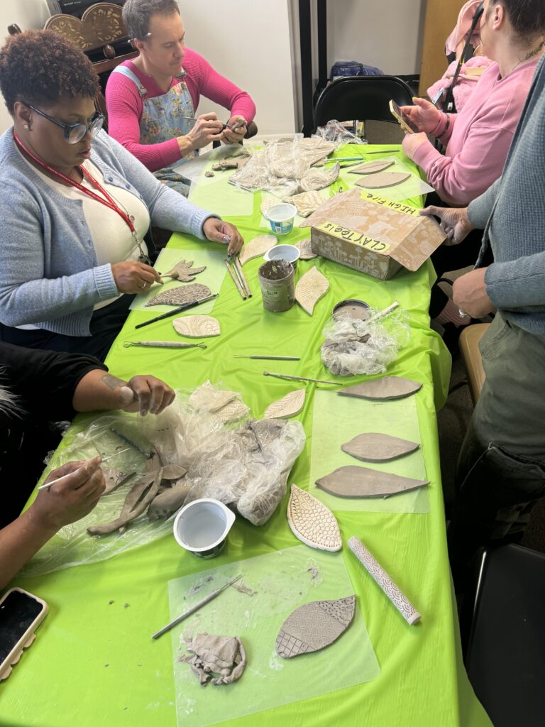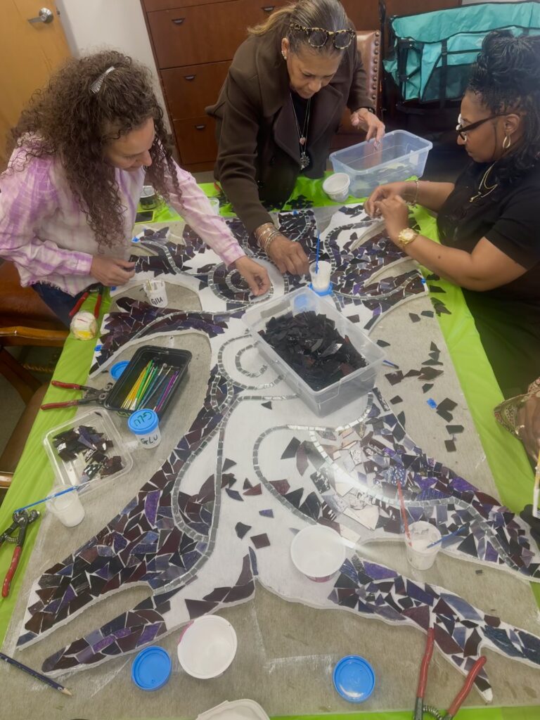 Empact Art, the host of our Community Art Workshops, recently brought creativity and connection to FRP Courtside. During this special session, our Courtside staff had the opportunity to create art alongside the parents we serve, allowing everyone to connect in a relaxed and meaningful way that may not have happened otherwise. Empact Art has been partnering with us to guide families and staff through a series of workshops where participants are handcrafting individual pieces that will come together to form a beautiful multimedia ceramic mosaic. Once completed, this collaborative artwork will be proudly displayed at Sage as a lasting symbol of community, creativity, and shared experience.
